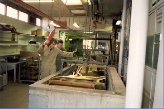 Wij kunnen staal chemisch in watergedragen voor-behandelingsbaden bewerken, ontvetten-zinkfosfateren of stralen tot SA2 en hierna coaten.
