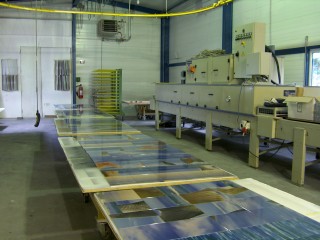 Wij lakken-spuiten ook gehard glas,. dit wegens zijn lage oppervlaktespanning zeer veeleisende substraat is dankzij een speciaal procédé toch van een uitstekende kleurlaklaag te voorzien.