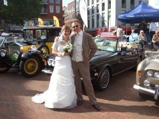 Rolls royce evenement in Alphen a/d Rijn sept 2012 , Edward en Theresia, een 1 eerste prijs voor presentatie kleding. groene hart, Jan een 2e prijs oldtimer bromfietsen, met de FLANDRIA super sport uit 1964.