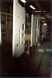 De natlak lijn, doen wij in bedrijfs hal nr. 2,   daar waar meerdere laklagen worden aangebracht, dus ook de oplosmiddel houdende lakken,  wij doen dit nog met de conventionele boven of onderbeker, airless mix  en lucht elektrostaat , ook airless-Elektrostatisch,  zowel de 2k. lakken als met  de watergedragen lakken.