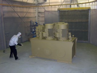 het MET AYRMIX , VERSPUITEN VAN PASSENDE COATINGS OP EEN OBJEKT VAN WAT GROTER FORMAAT, UITERAARD DOEN WIJ DIT VOLUME HANDMATIG,TOTAAL GEWICHT CA.4800KG.