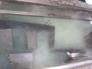 chemische reaktie van het staal in het bad ca, 65°C,het ontstaan van de zinkfosfateerlaag in wording,bad inhoud ca.8000 lt.